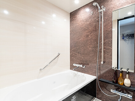 ゆったりとした洗い場付きのお風呂は、バスタブも足が延ばせる広々サイズ。まるで自宅に帰宅したかのようなホッコリ感。