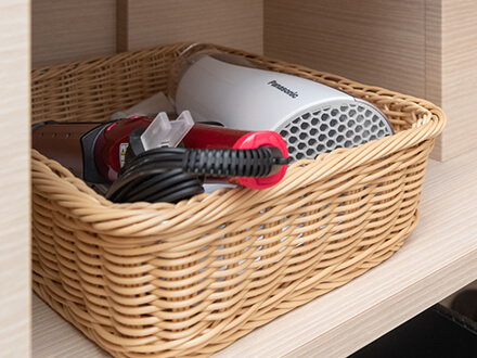 早く乾いて、髪にうるおいを与えるナノケアのドライヤーとヘアーアイロンを全室に完備しております。