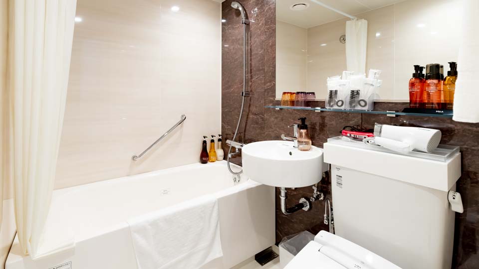 The separate bathroom has a washing area. Stretch out your arms and legs, and relax in the bathtub that you can soak your shoulders in. The water temperature is set at the right level to make you feel comfortable.